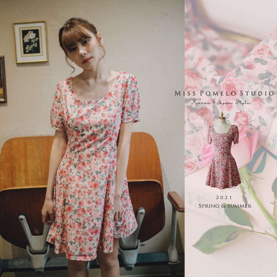 ● 浪漫又復古的玫瑰花裙